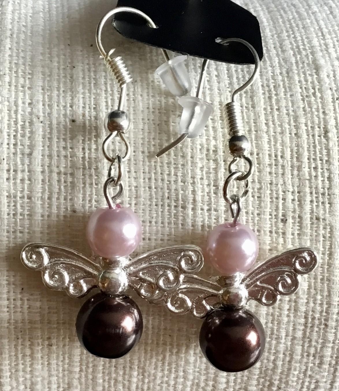 Boucles d'oreilles "ange" en métal argenté (sans nickel)