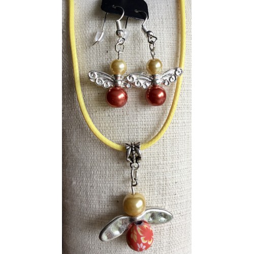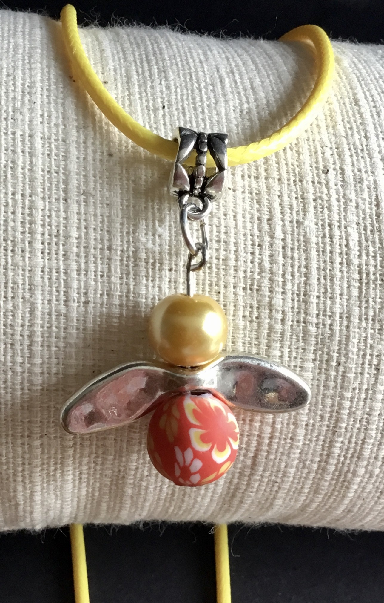 Collier "ange" en métal argenté (sans nickel) avec cordon de couleur.