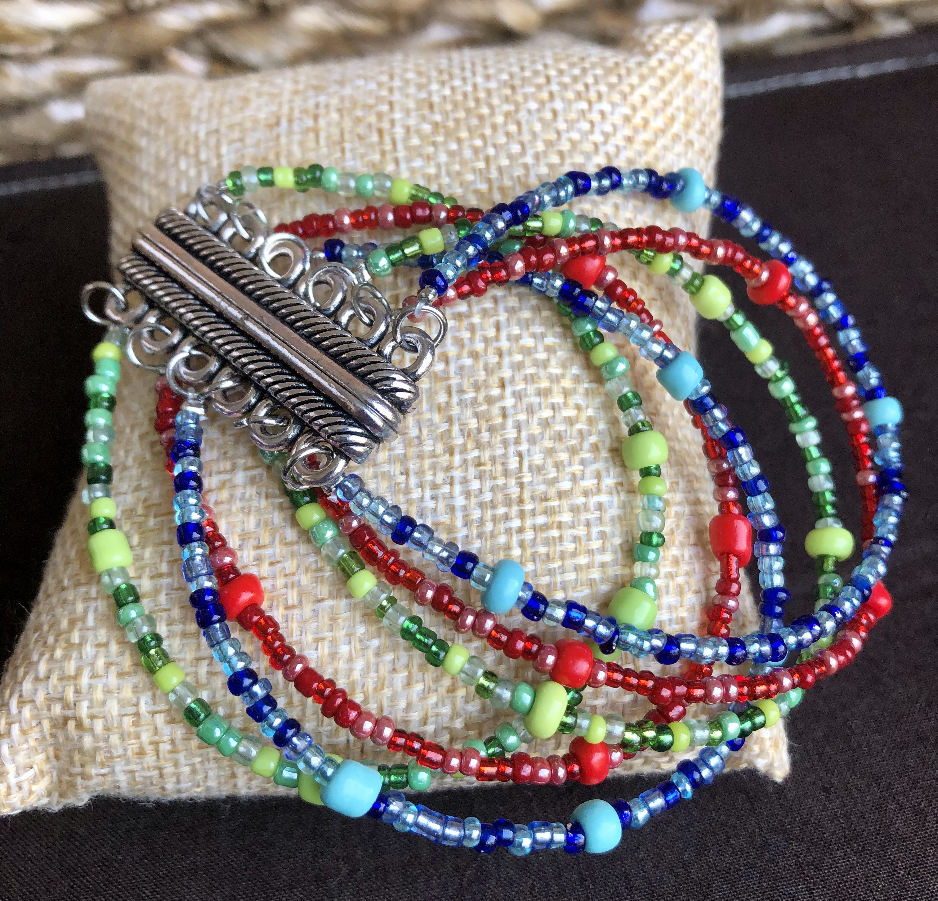 Chaque bracelet est de taille "standard" (environ 19cm). Si vous souhaitez une taille différente, mesurez votre tour de poignet et envoyez moi votre demande par message.