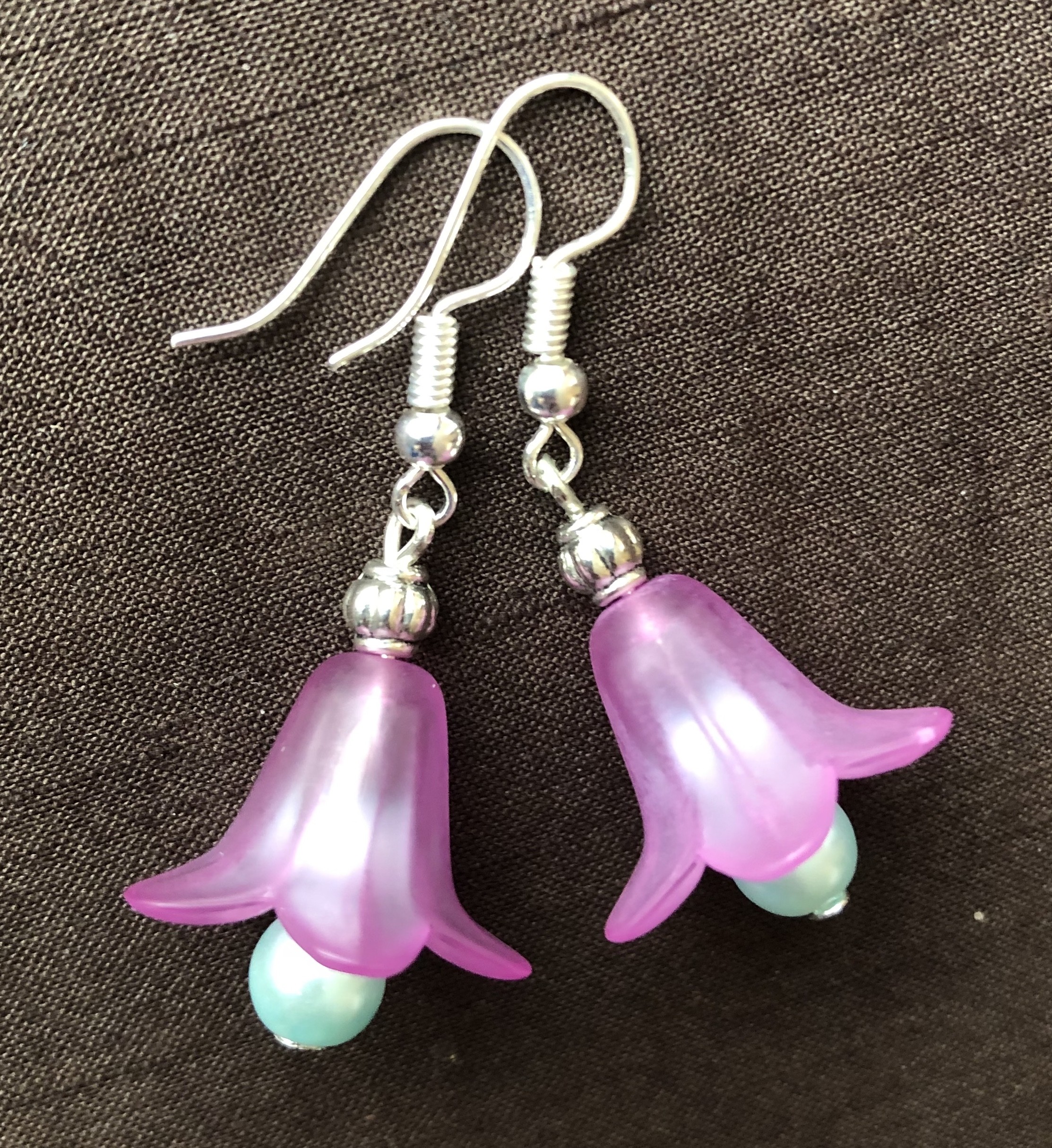 Boucles d'oreilles "tulipe" en métal argenté (sans nickel) & Perles acryliques