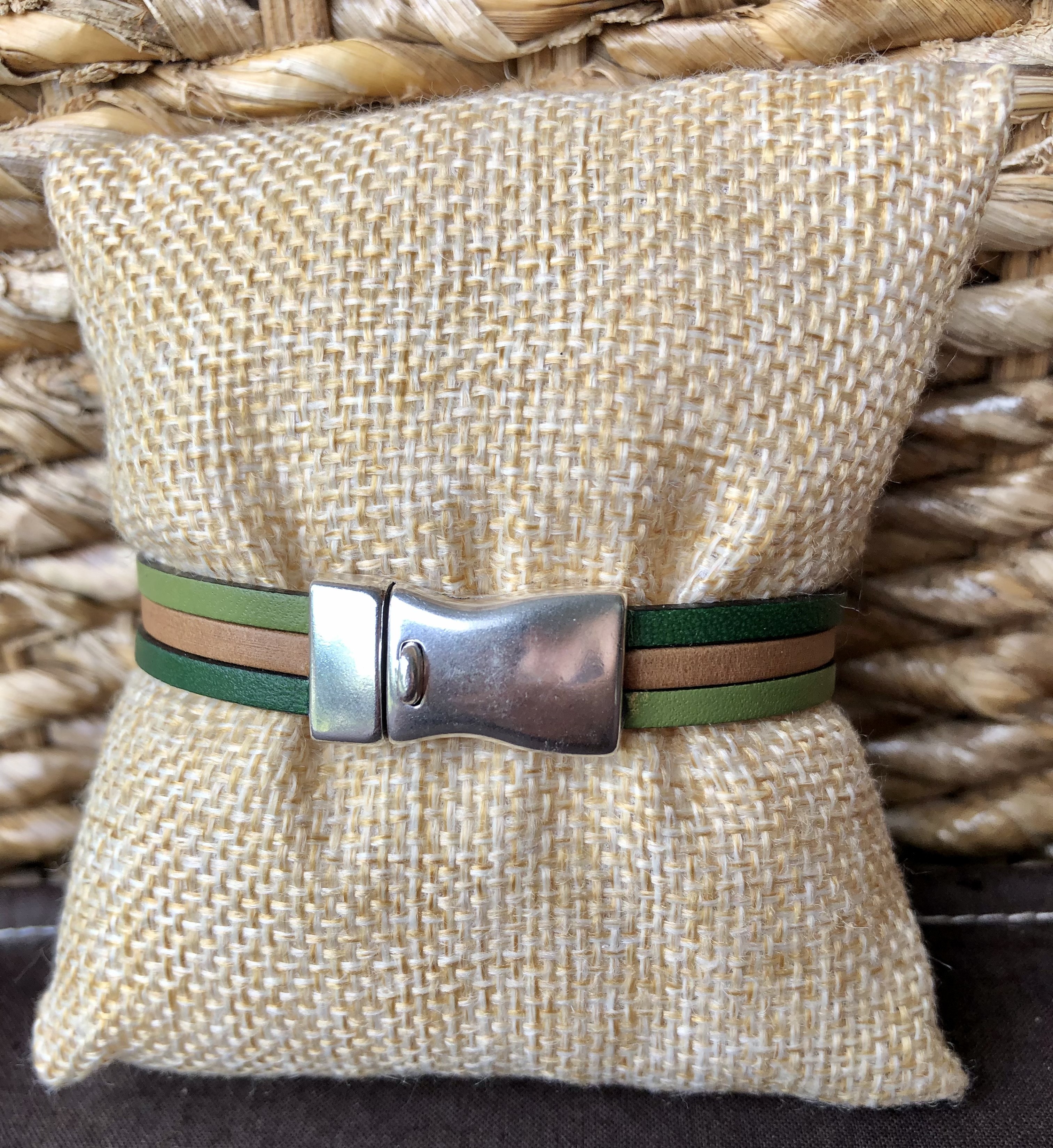 Chaque bracelet est de taille "standard" (environ 17 cm). Si vous souhaitez une taille différente, mesurez votre tour de poignet et envoyez moi votre demande par message.