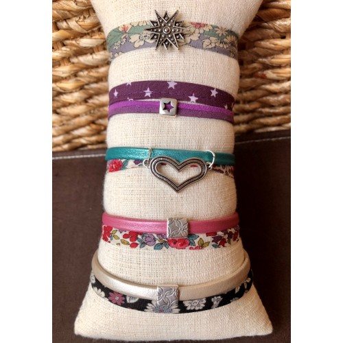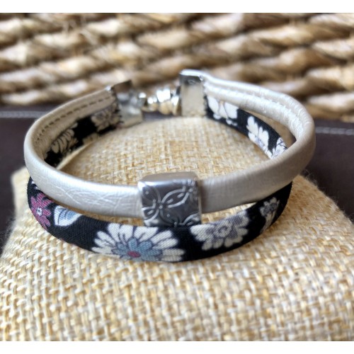Bracelet cordon simili cuir et tissu Liberty.