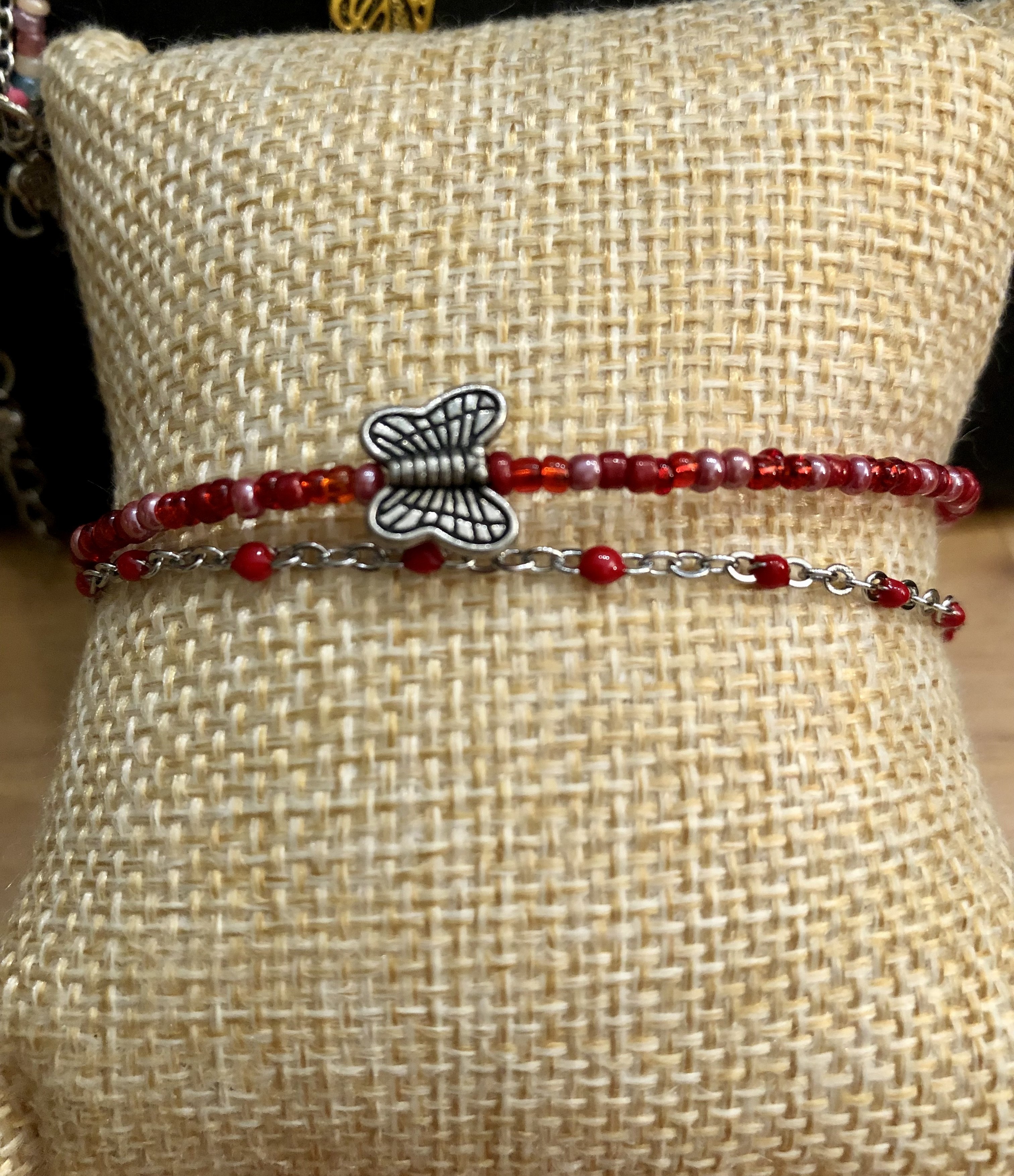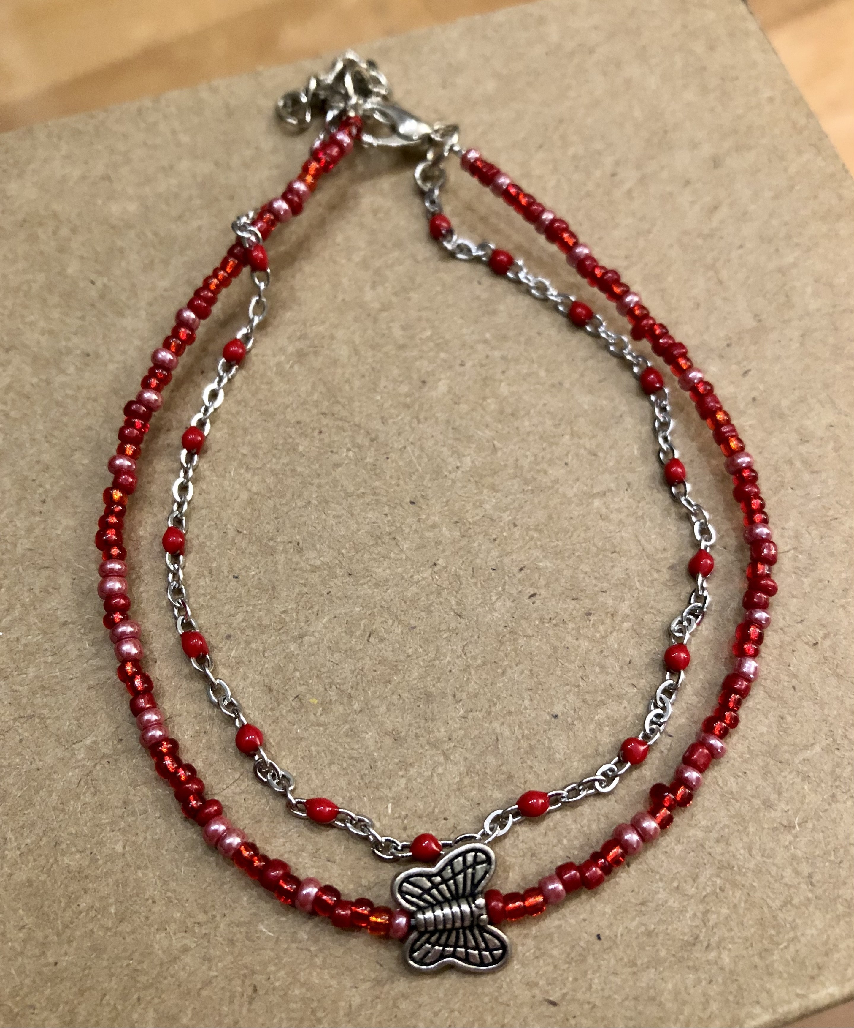 Chaque chaîne est de taille "standard" (environ 22 cm). Si vous souhaitez une taille différente, mesurez votre tour de cheville et envoyez moi votre demande par message.
