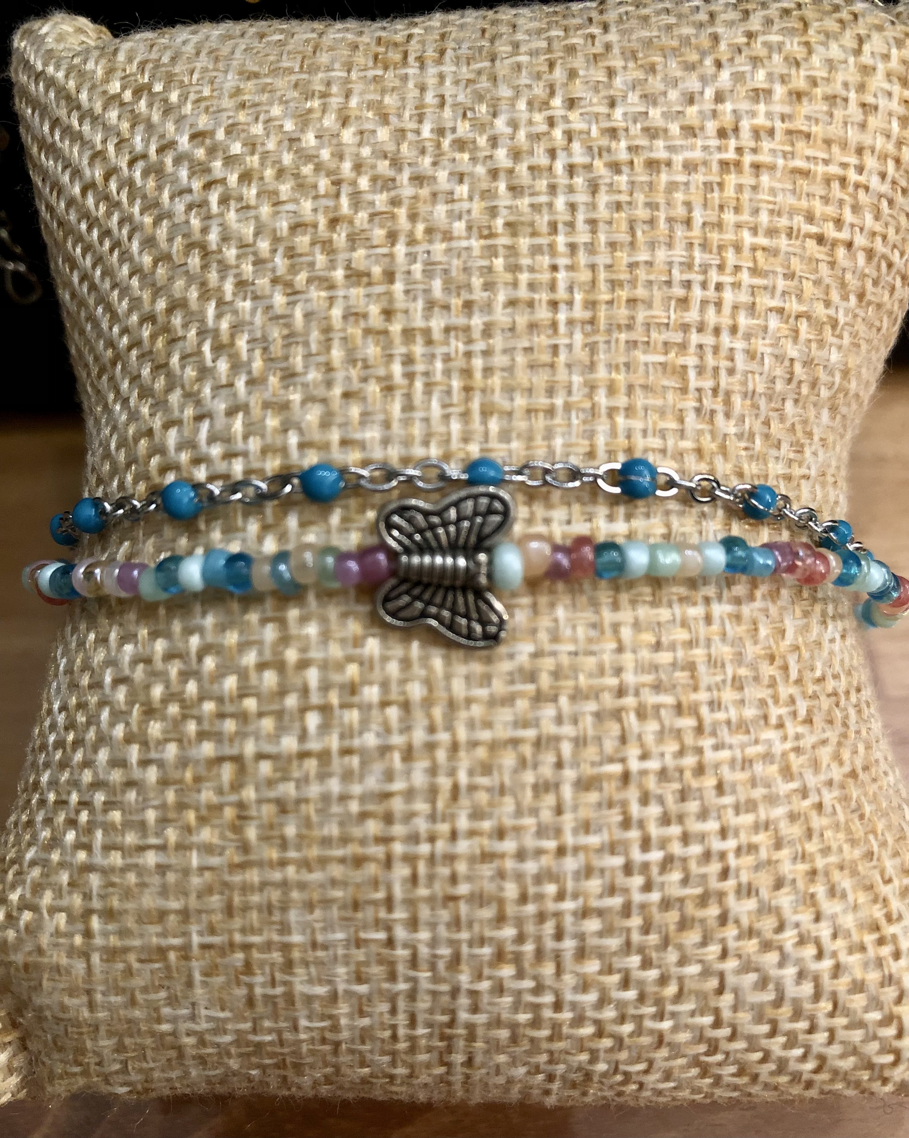 Chaque chaîne est de taille "standard" (environ 22 cm). Si vous souhaitez une taille différente, mesurez votre tour de cheville et envoyez moi votre demande par message.
