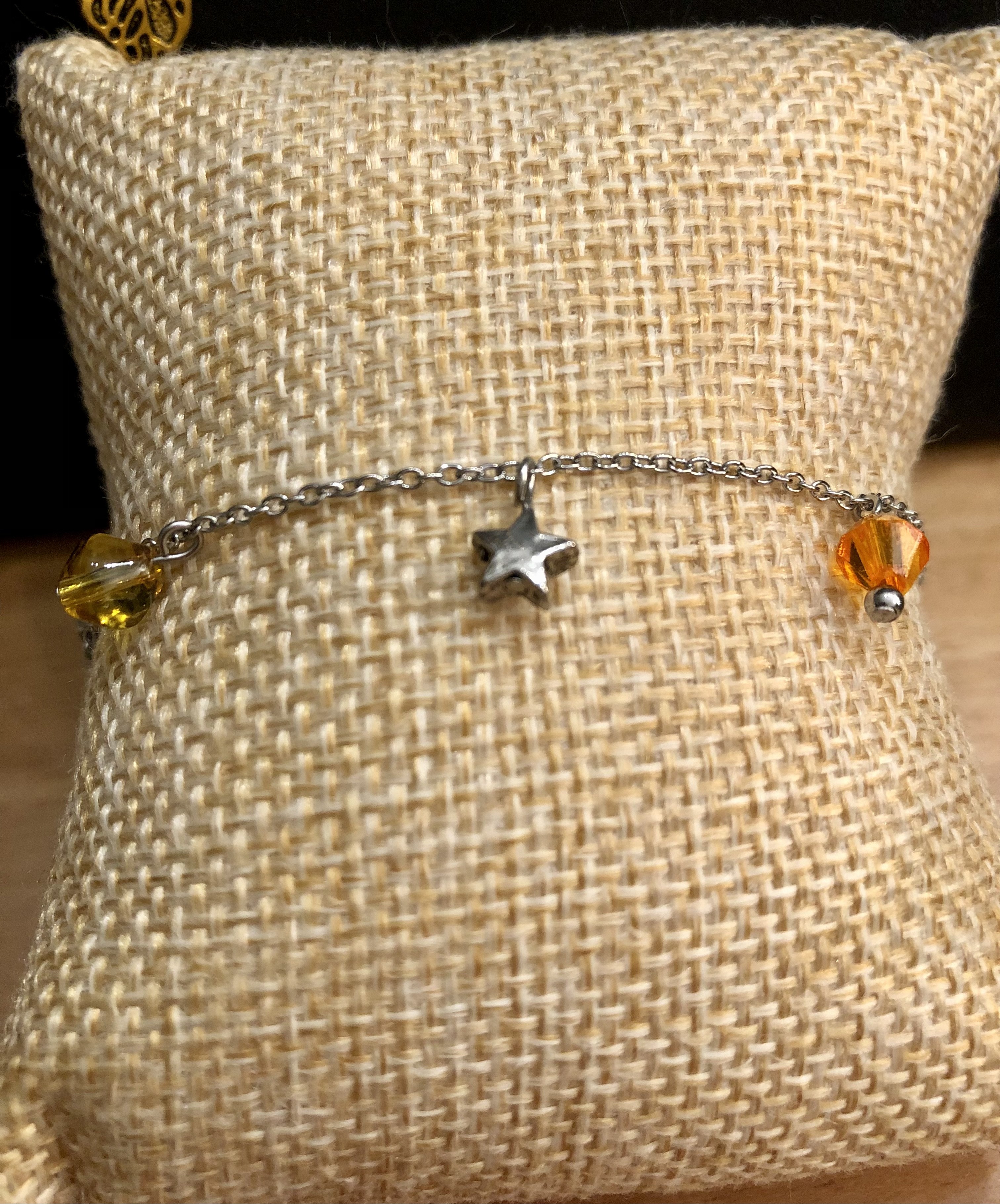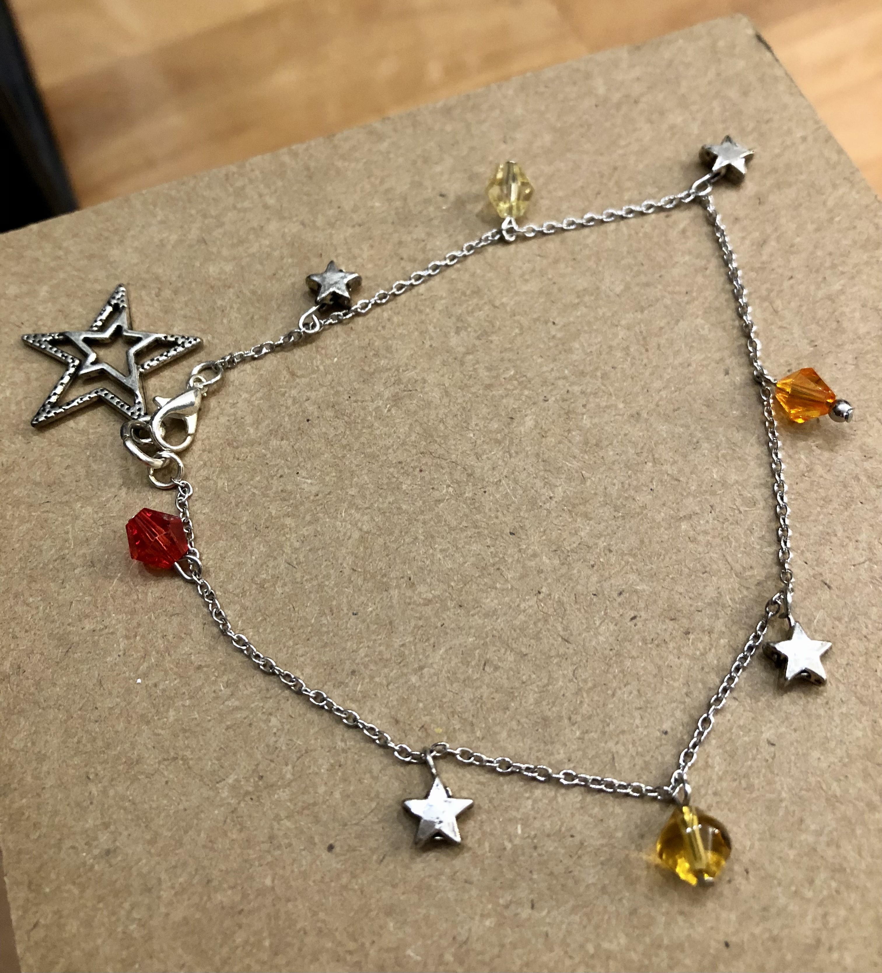 Chaque chaîne est de taille "standard" (environ 22 cm). Si vous souhaitez une taille différente, mesurez votre tour de cheville et envoyez moi votre demande par message.