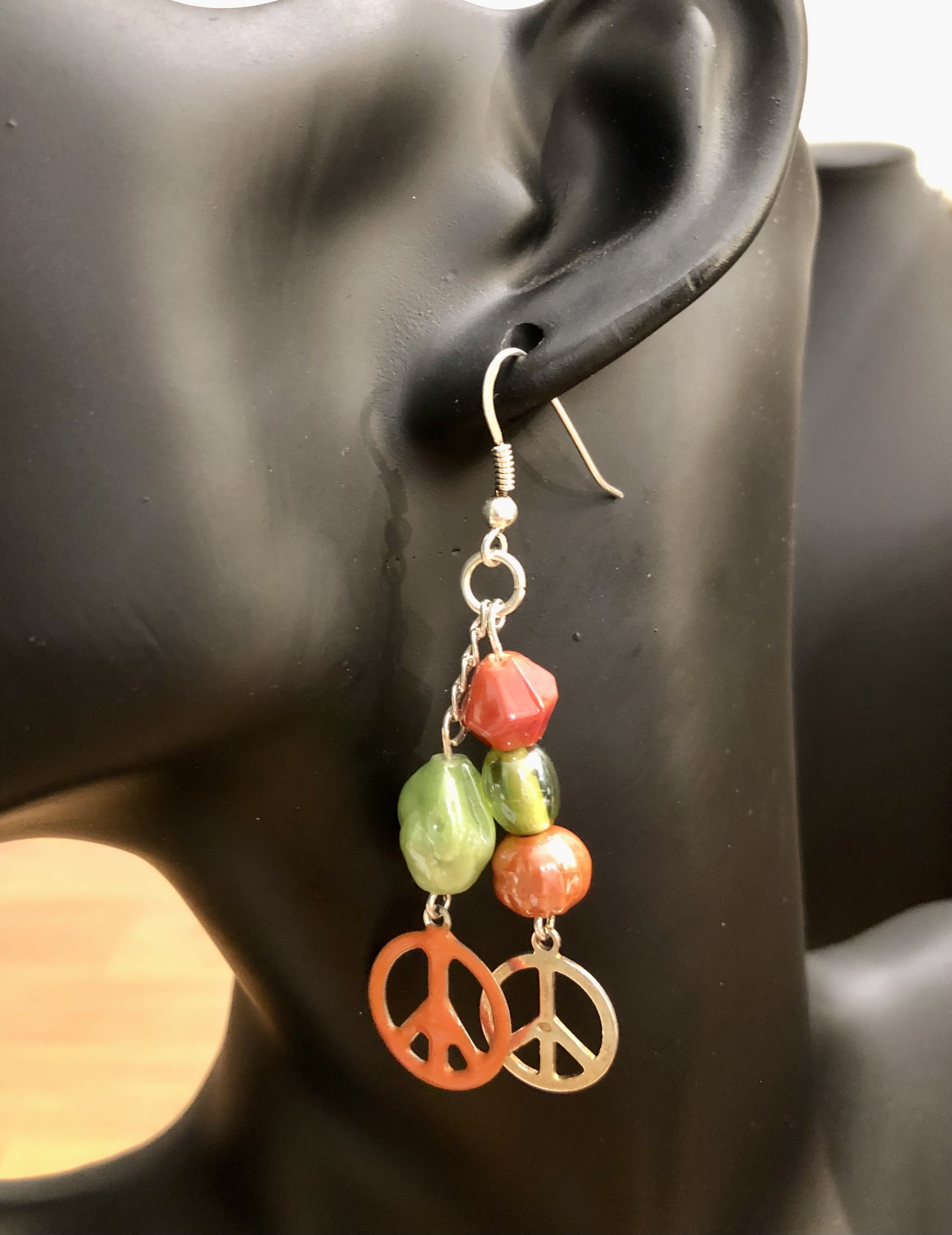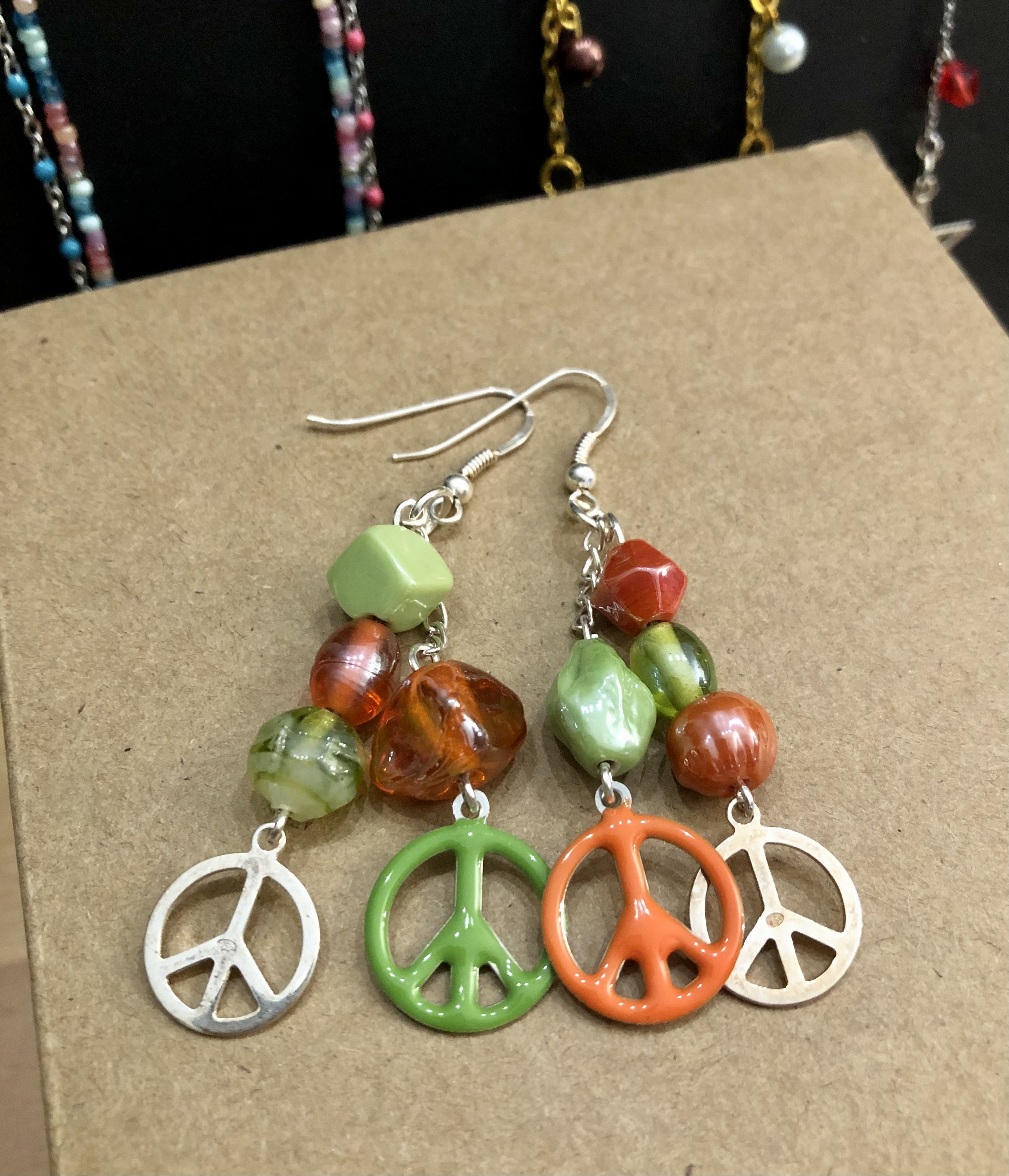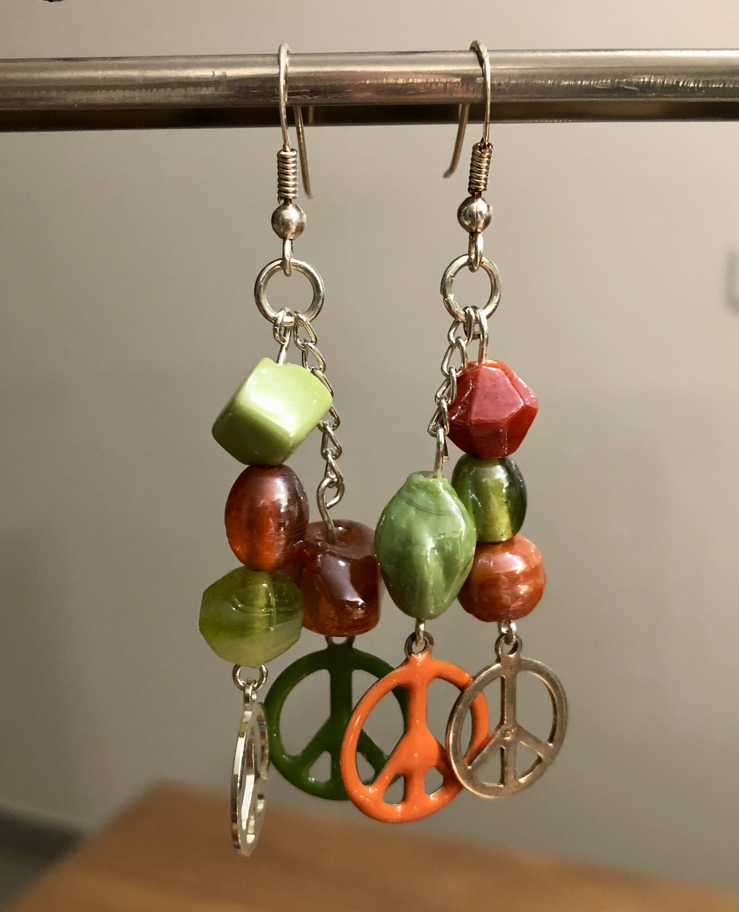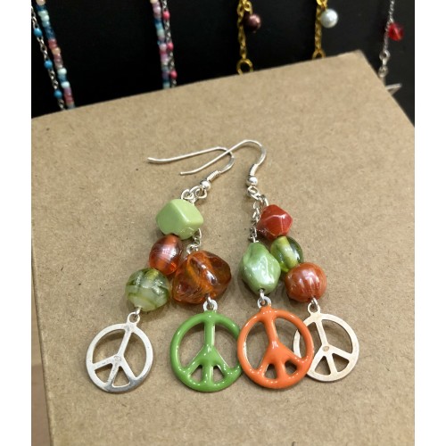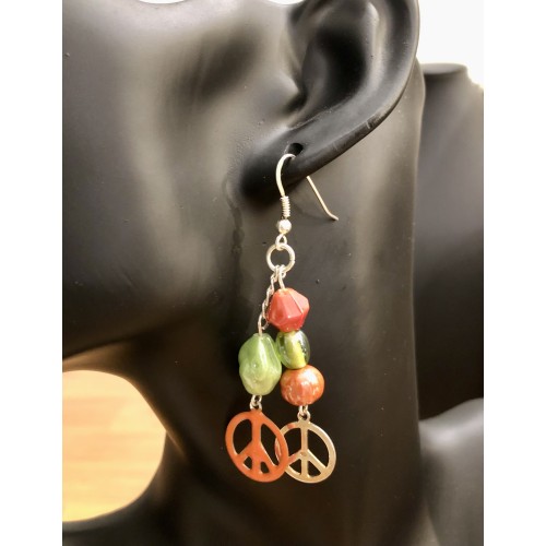 Perles de Verre et Breloques Peace & Love en métal peint et argenté