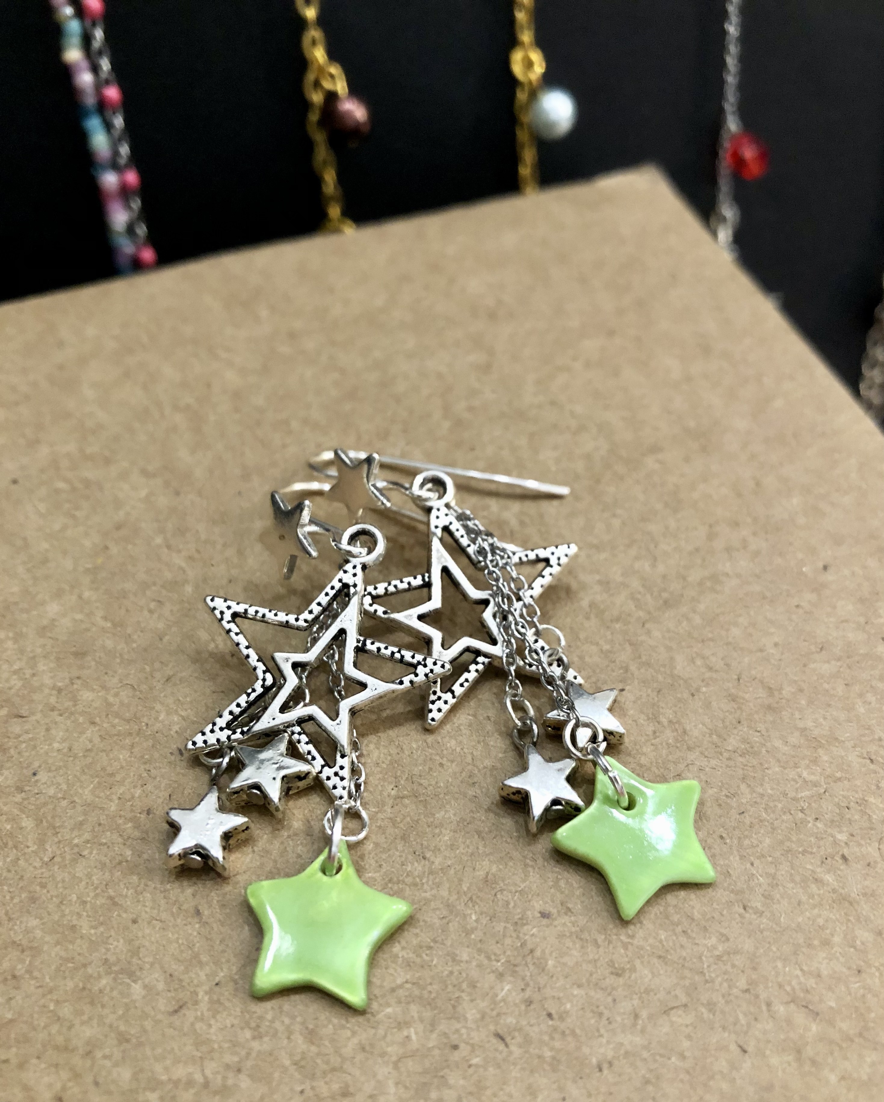 Boucles d'oreilles pendantes en métal argenté (sans nickel).